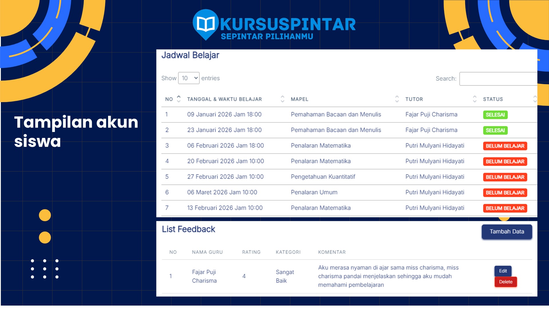 Les Privat SD, SMP, SMA, UTBK SNBT, Kedinasan hingga umum. Pengajar berkualitas telah berpengalaman meningkatkan prestasi siswa.
